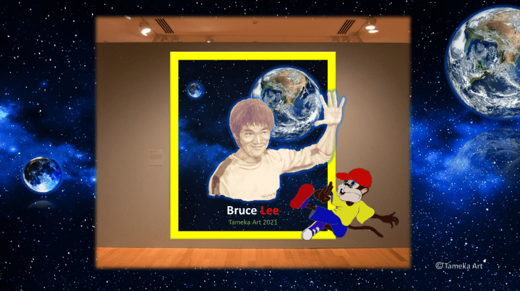 Click on the link to purchase the NFT: https://opensea.io/collection/tameka-art-in-their-own-words?search[stringTraits][0][name]=Collectible%20Art&search[stringTraits][0][values][0]=Bruce%20Lee