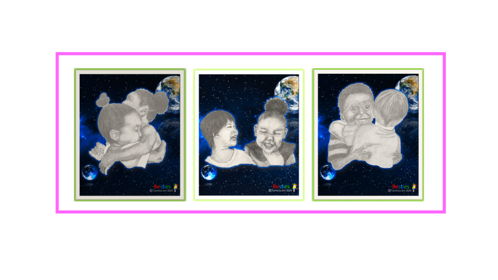 Discover the unbreakable bond of friendship in this unique NFT art collection: Besties. This collection is available on the OpenSea platform. Just click on this link to view it: Besties – Tameka Art – Collection | OpenSea.