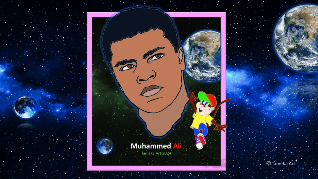 Working on Muhammed Ali. Art will be available on the OpenSea platform. -Tameka Art